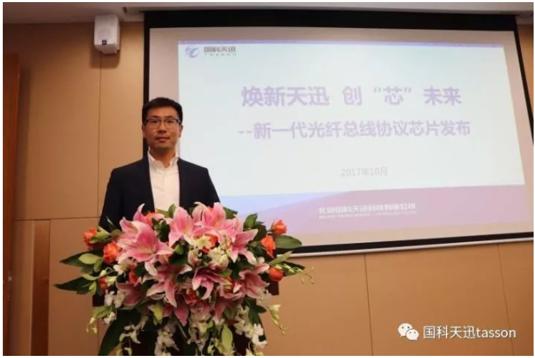 国科乐动在线-乐动在线(中国)市场部经理徐俊亭为大家讲解并发布国内高可靠光纤通信领域的首款总线协议芯片产品。